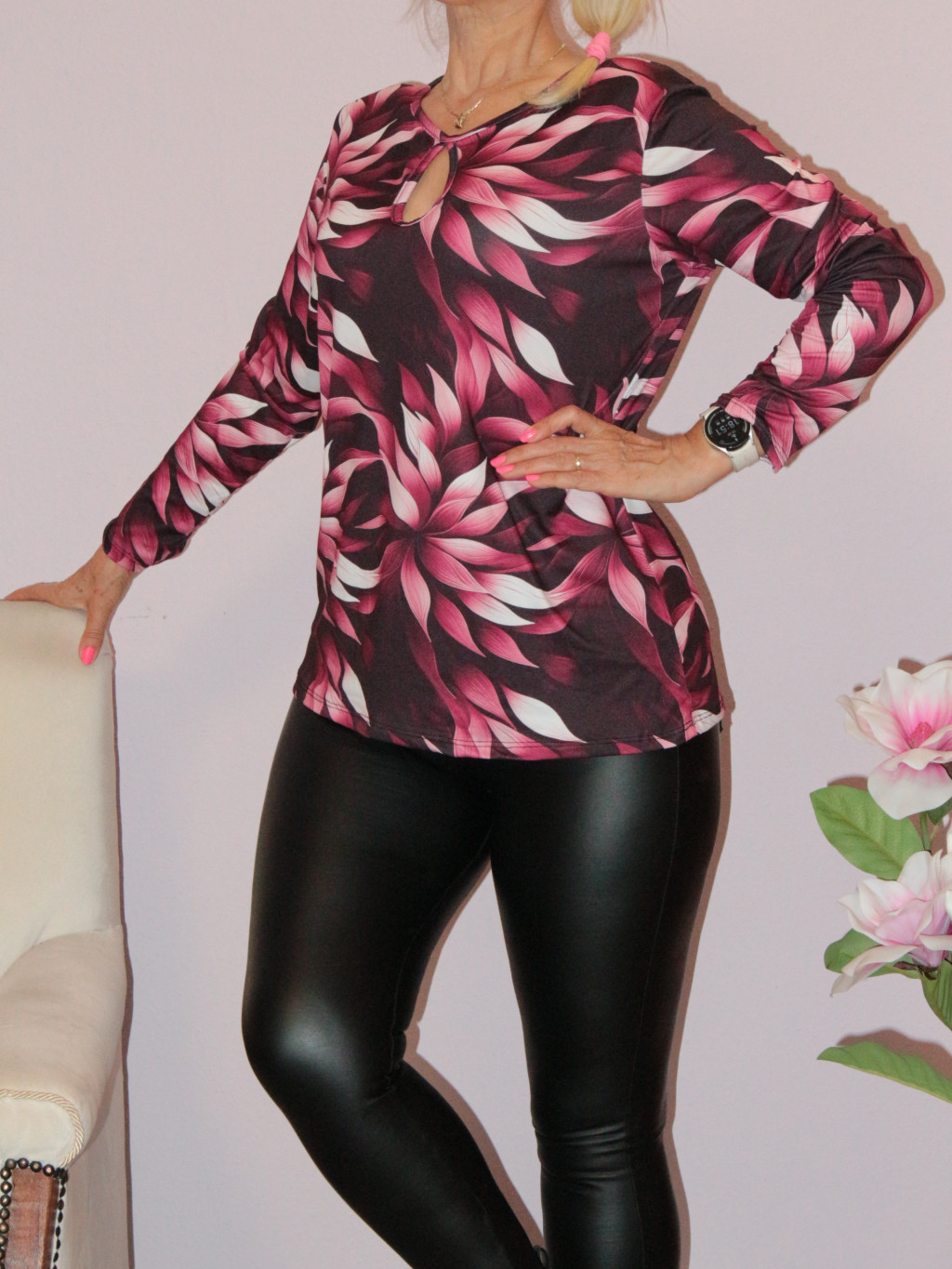 Levél mintás,csepp kivágású felső! burgundi L-XL