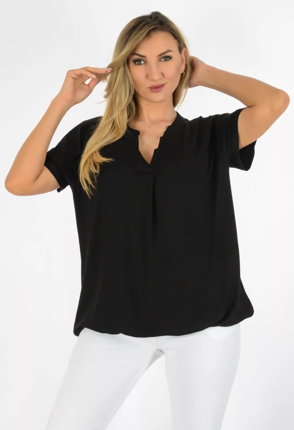 Egyszínű, ingfazonú ,gumis aljú felső! fekete L-XXL