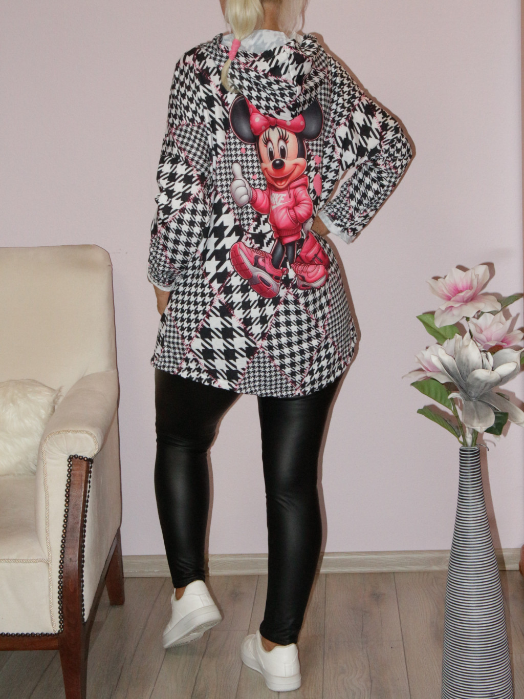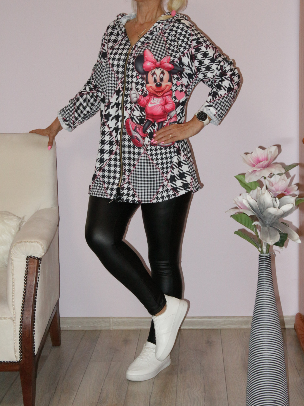 Egérkés,tyúkláb mintás,kapucnis cipzáras kardigán ! L-XXL