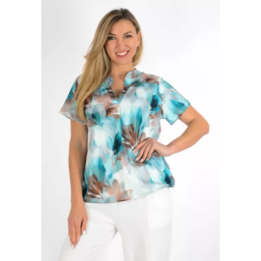 Virág mintás, ingfazonú ,gumis aljú felső! türkizzöld-camel L-XXL