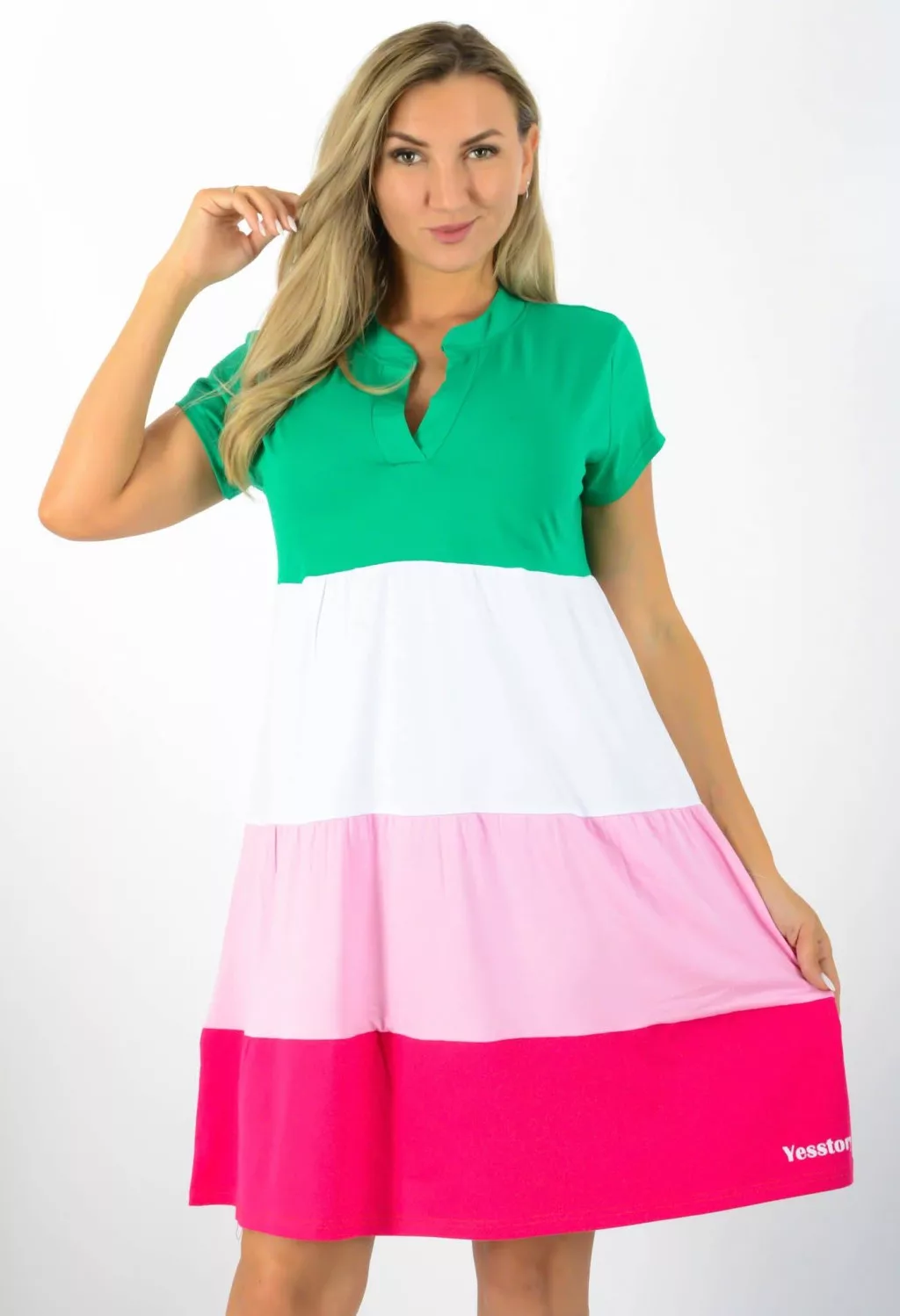 Több színű ,ingfazonú,A vonalú tunika! zöld-fehér-rózsaszín-pink M-XL