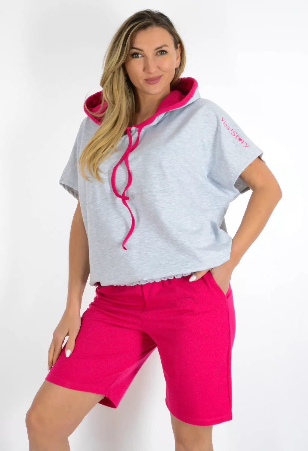 Kapucnis,kenguruzsebes,YESSTORY együttes ! pink-szürke L-XXL