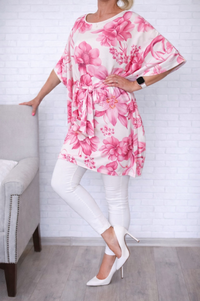 Virágos lepel tunika! pink-magenta-fehér L-XXL
