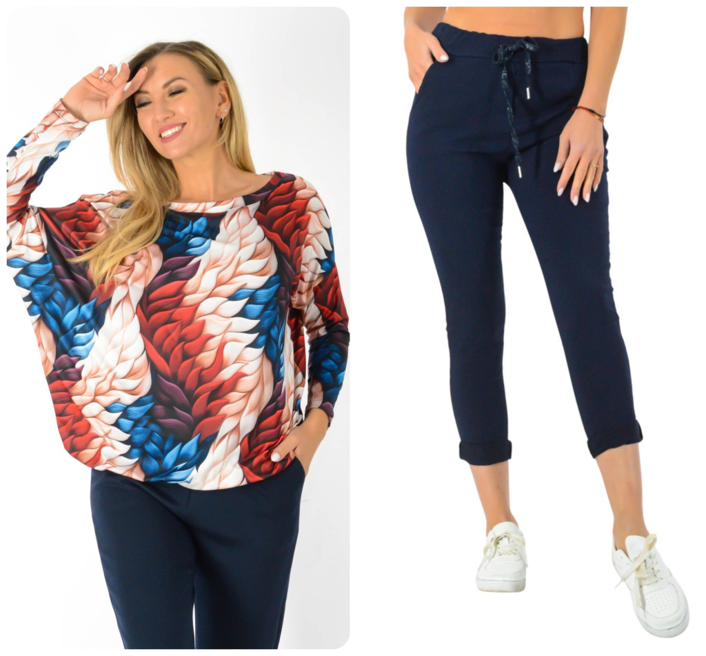 Levél mintás aszimmetrikus gumis aljú,nadrágos szett !  L-XXL