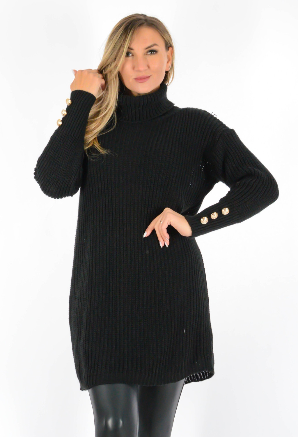 Ujján gombdíszes,garbós,kötött tunika ! fekete M-XL