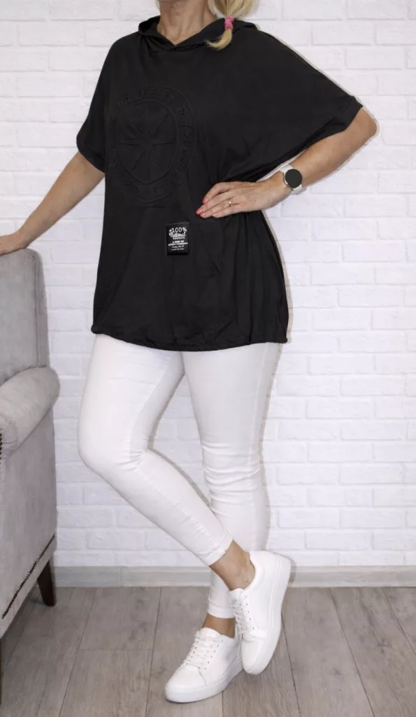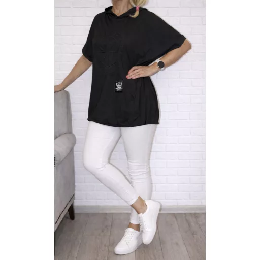 Nyomott mintás,kenguruzsebes,kapucnis,alja kötős felső ! fekete XXL