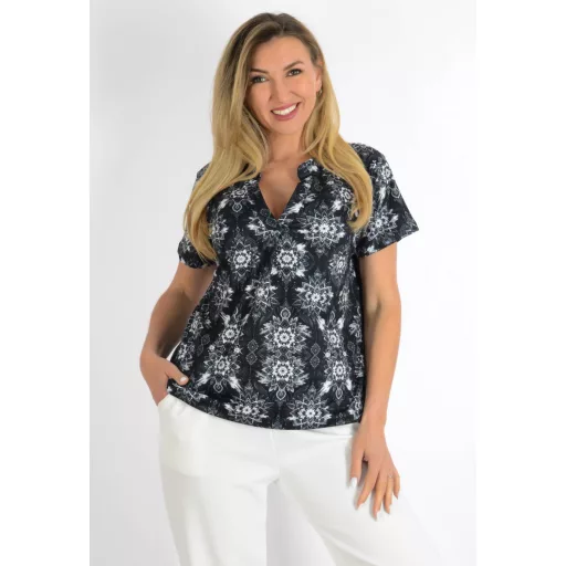 Mandala mintás, ingfazonú ,gumis aljú felső! fekete-fehér L-XXL