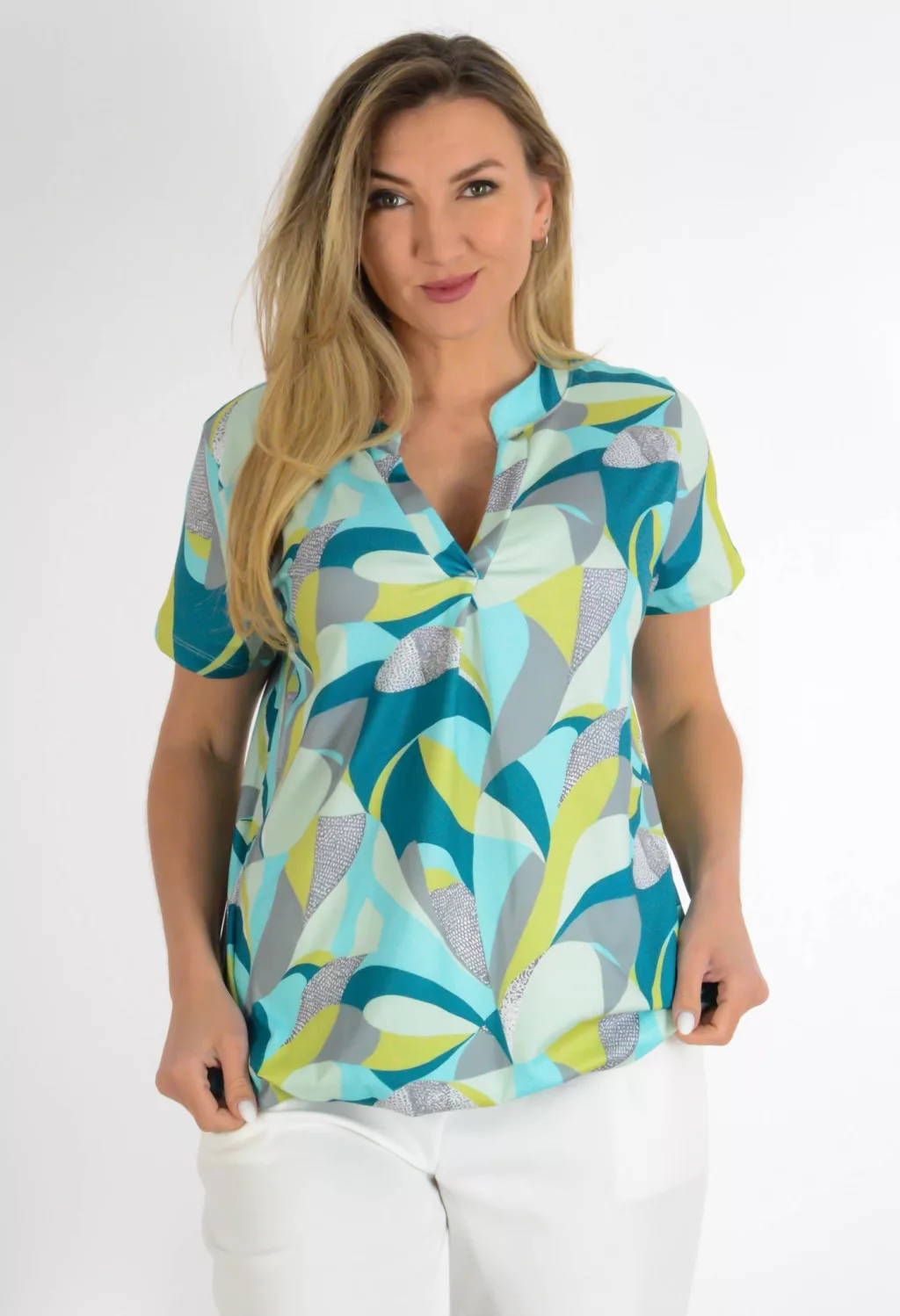 Mintás, ingfazonú ,gumis aljú felső! menta-szürke L-XXL