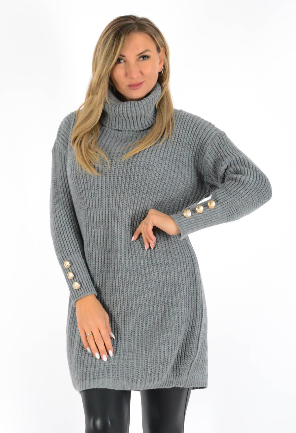 Ujján gombdíszes,garbós,kötött tunika ! szürke M-XL