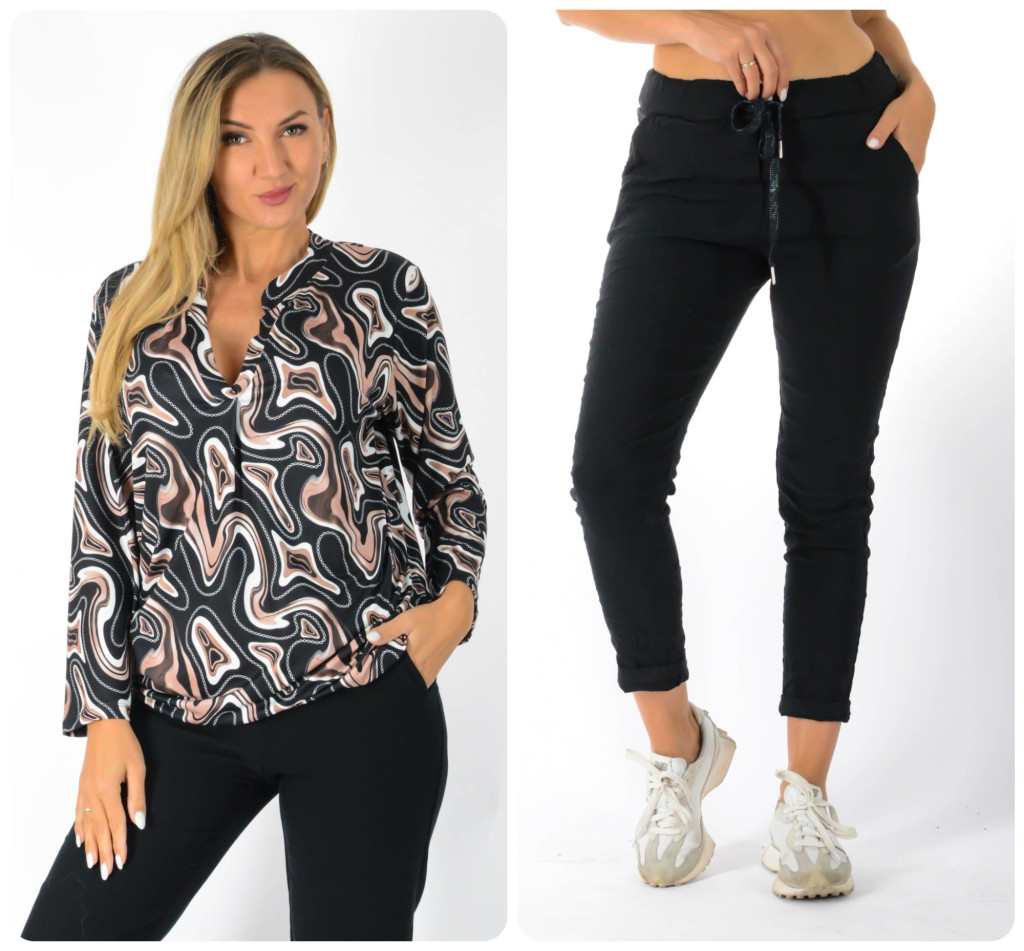 Mintás,ingfazonú, gumis aljú ,nadrágos szett ! barna-fekete L-XXL