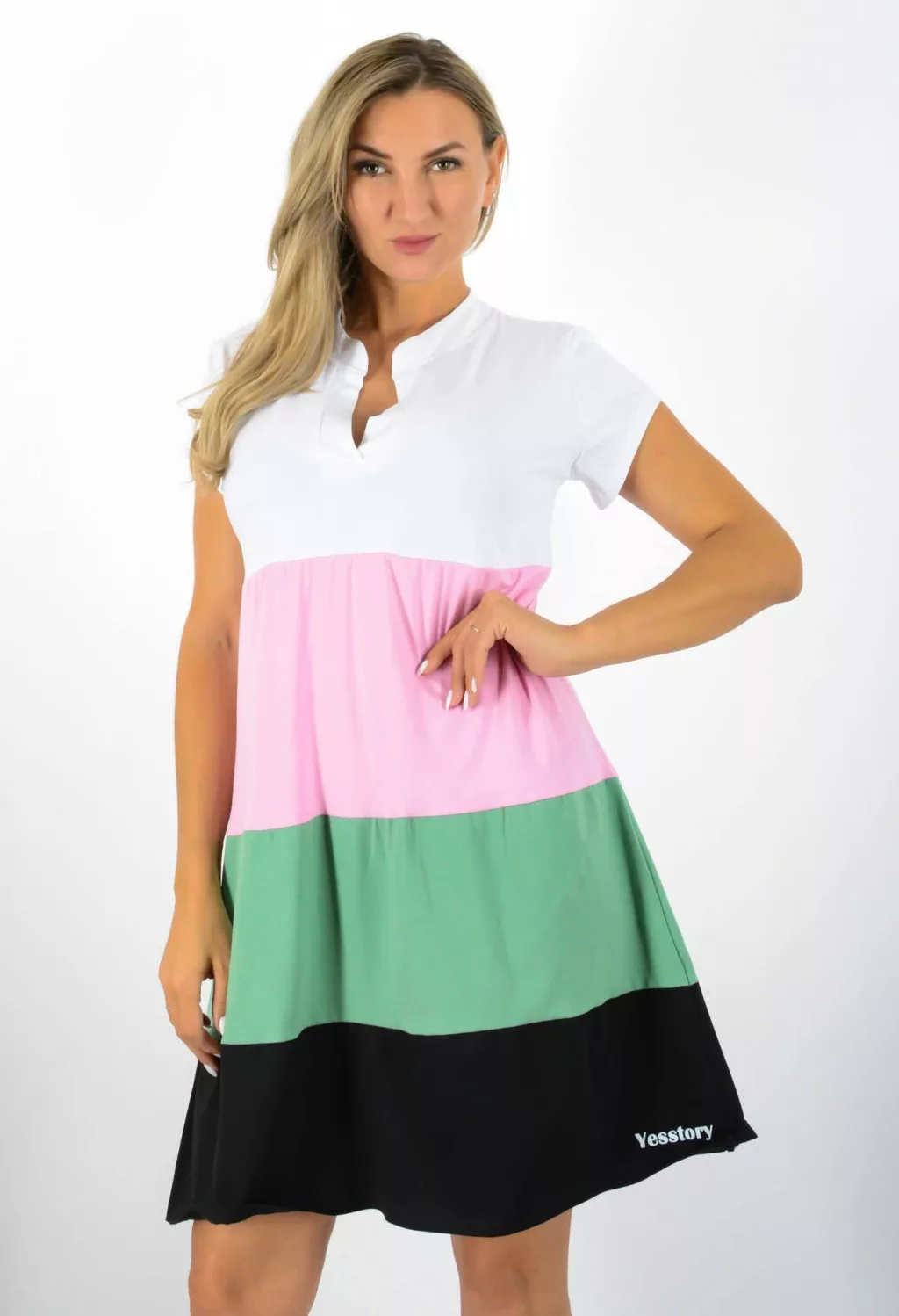 Több színű ,ingfazonú,A vonalú tunika! fehér-rózsaszín-zöld-fekete M-XL