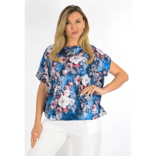 Virág mintás,aszimmetrikus,gumis aljú felső ! sötétkék L-XXL