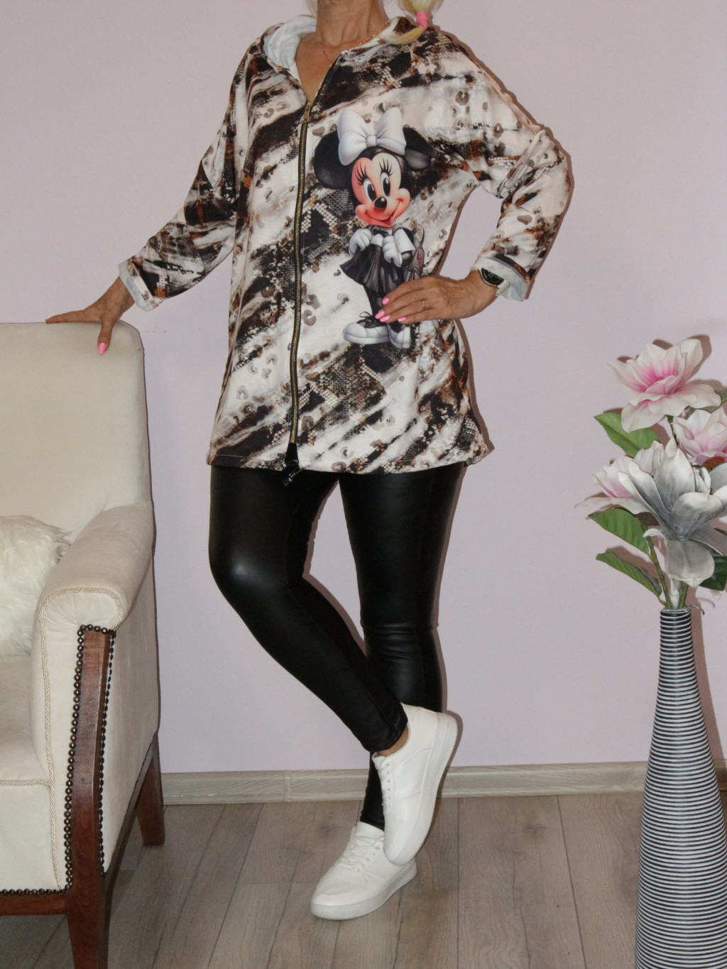 Egérkés,mintás,kapucnis cipzáras kardigán ! ekrü-fekete-barna L-XXL