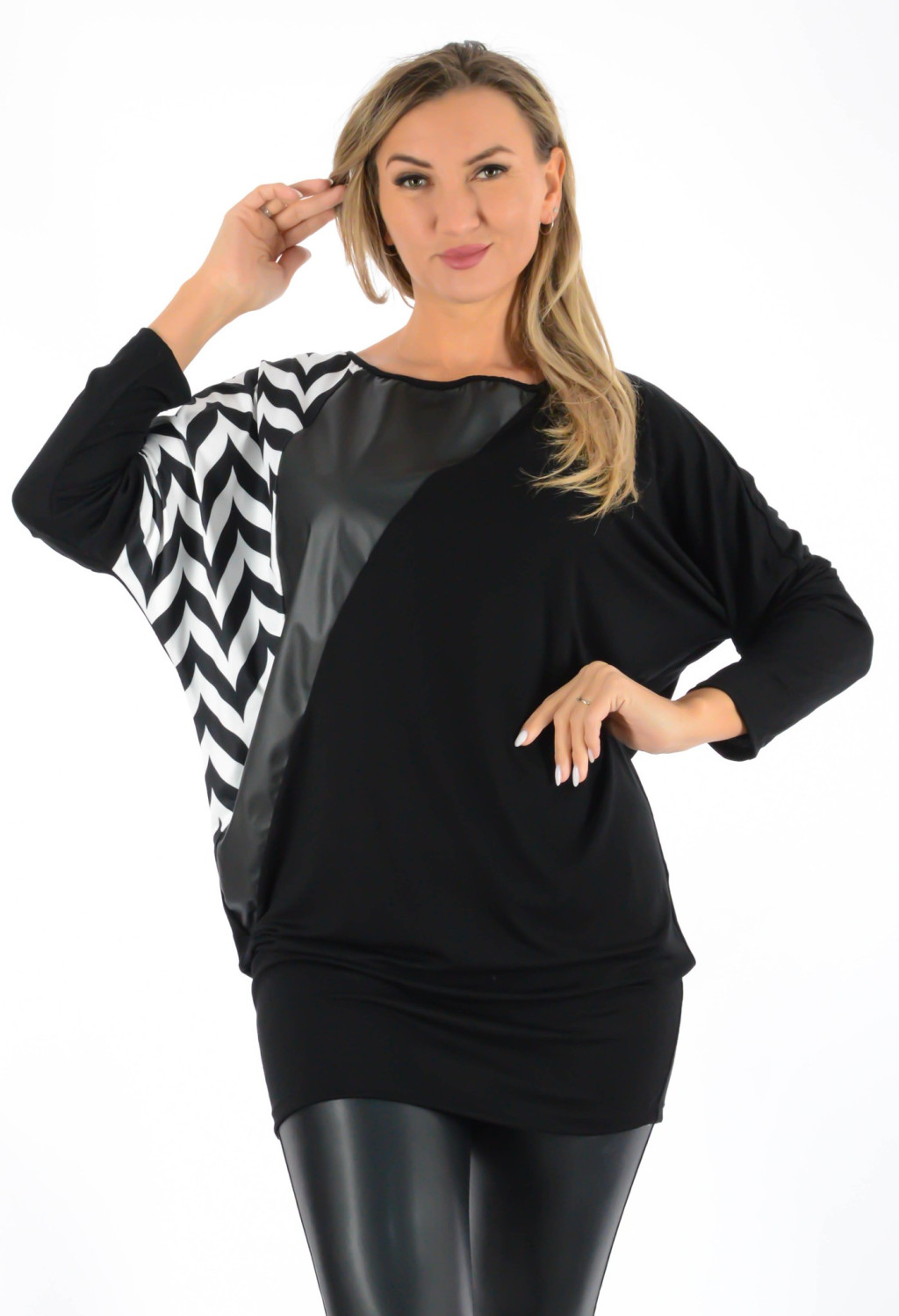 Mintás,denevérujjas,latex betétes tunika! fekete-fehér L-XL
