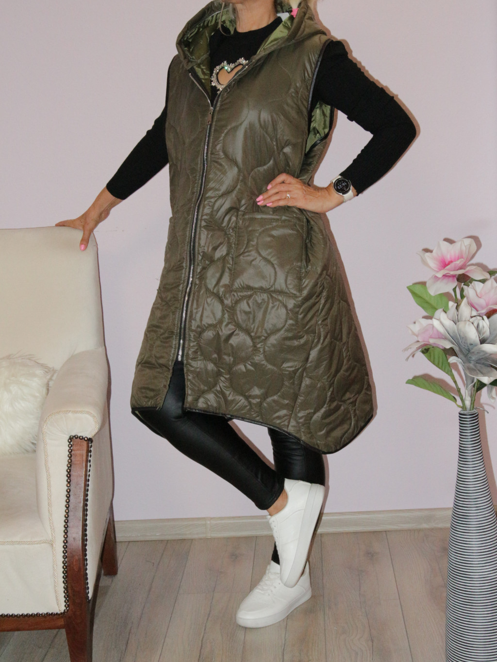Steppelt ,kapucnis,zsebes ,ívelt aljú,cipzáras mellény! khaki XL-3XL
