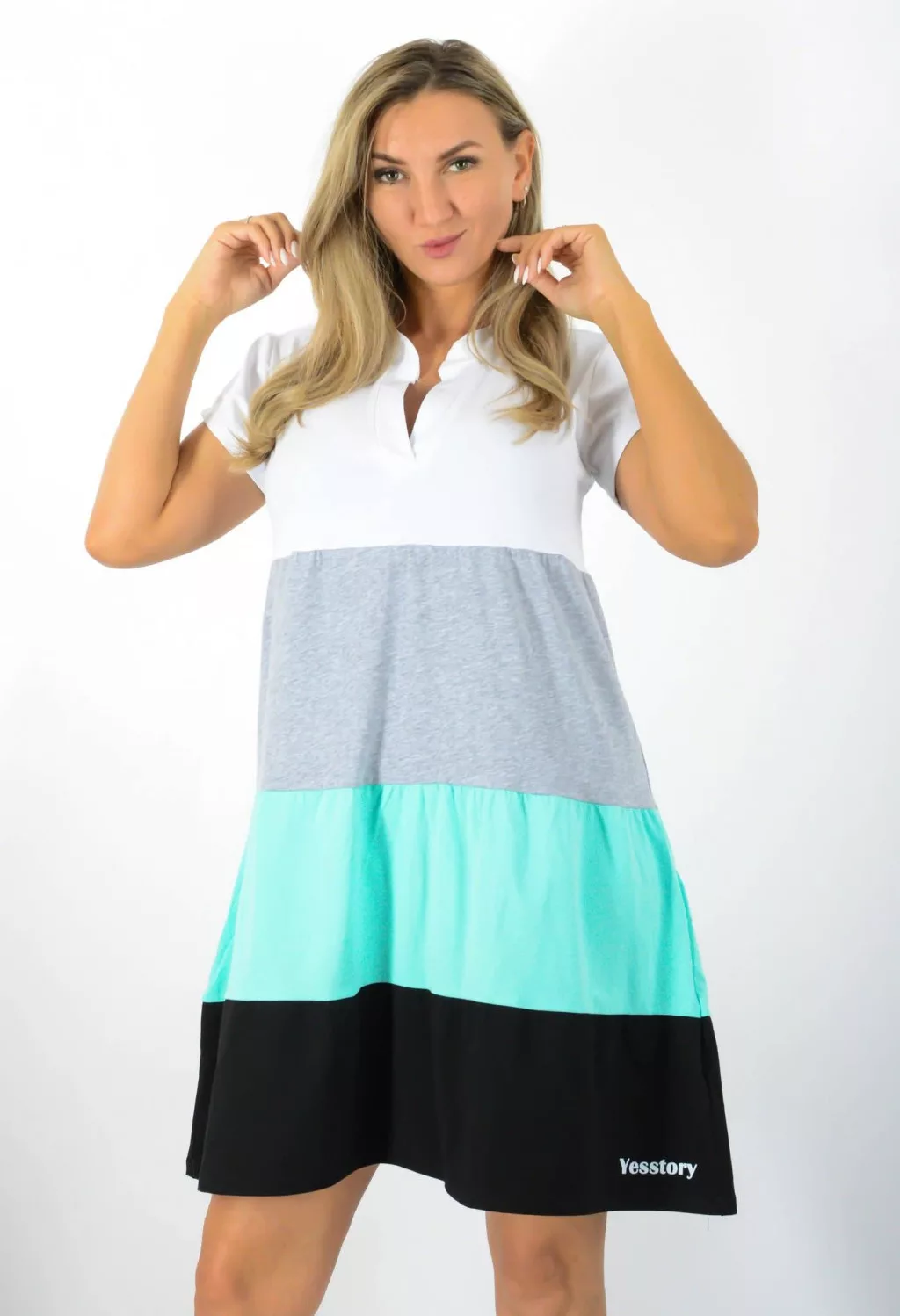 Több színű ,ingfazonú,A vonalú tunika! fehér-szürke-türkiz-fekete M-XL