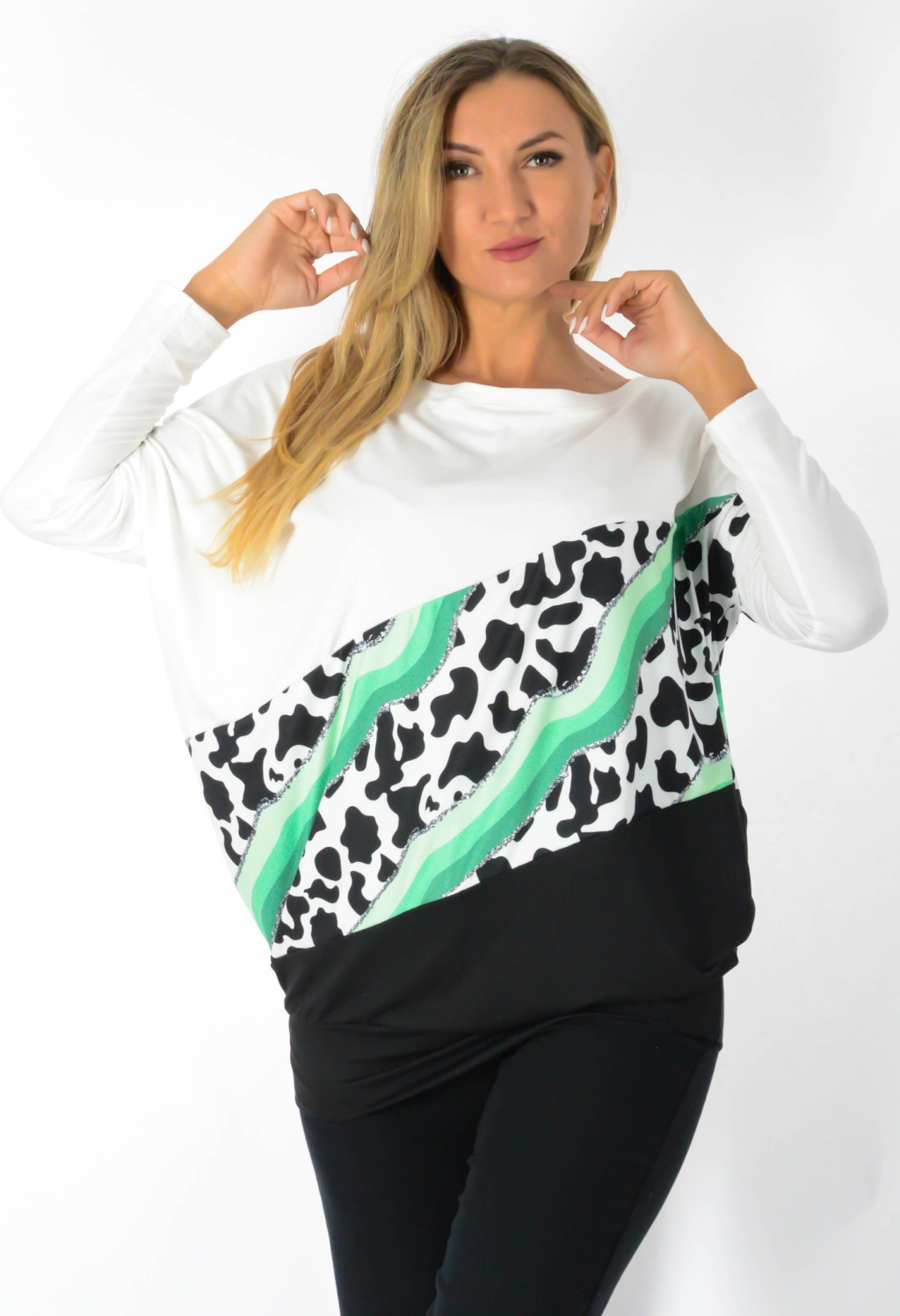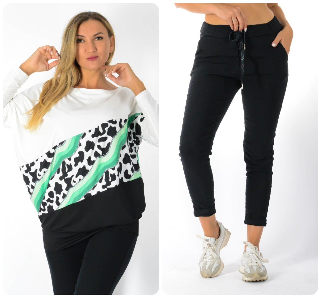 Leopárd mintás,aszimmetrikus, passzés aljú ,nadrágos szett ! zöld-fekete L-XXL