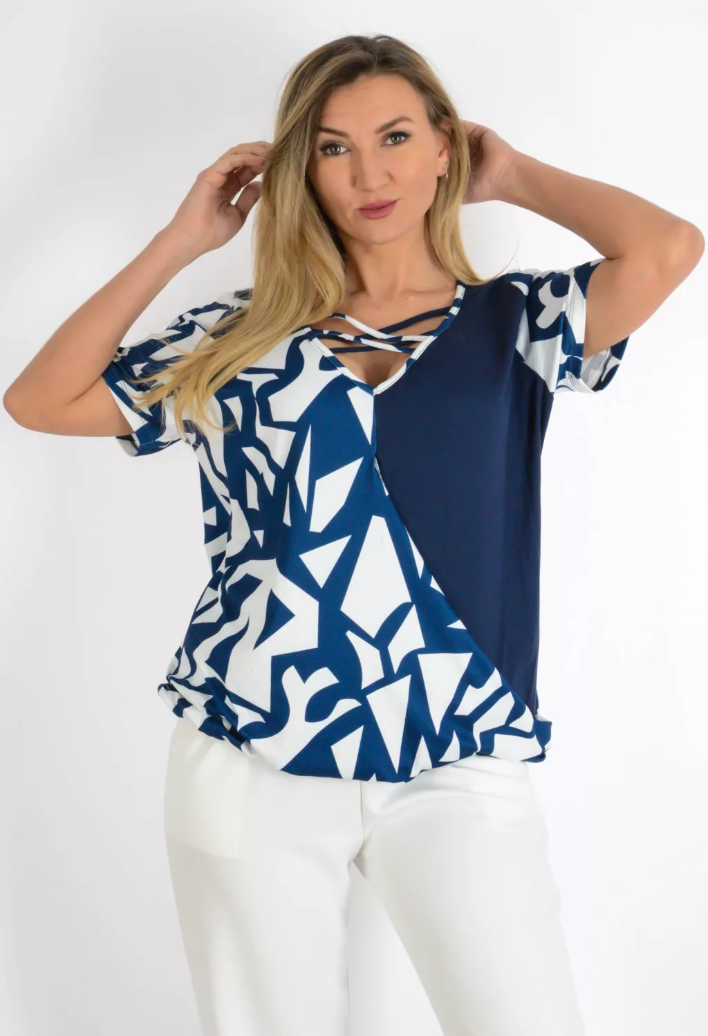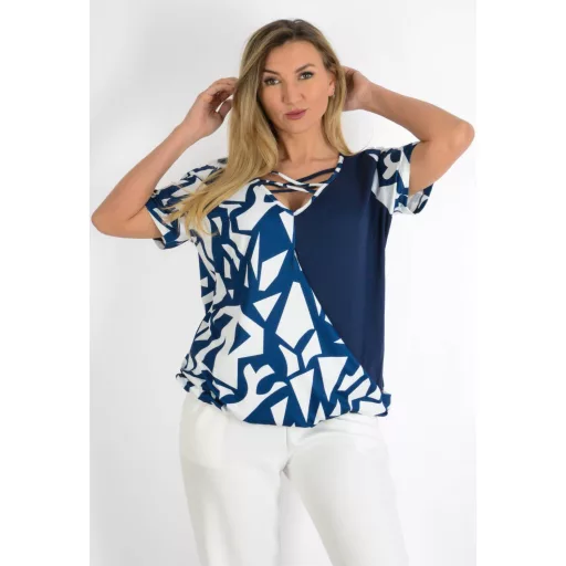 Mintás,keresztpántos,átlapolt,gumis aljú felső! sötétkék-fehér L-XXL