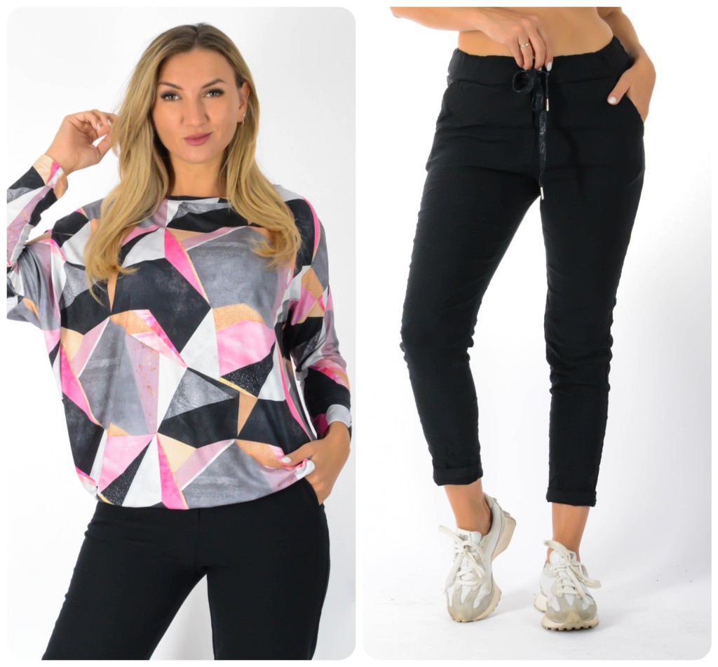 Geometriai mintás aszimmetrikus gumis aljú ,nadrágos szett ! L-XXL