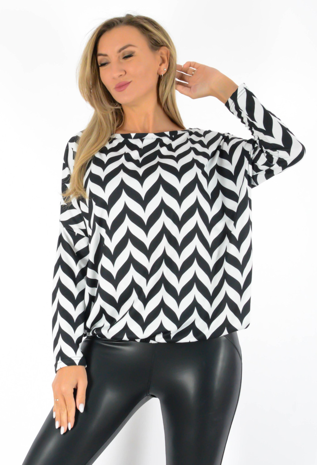 Mintás,aszimmetrikus,gumis aljú felső ! fekete-fehér L-XXL