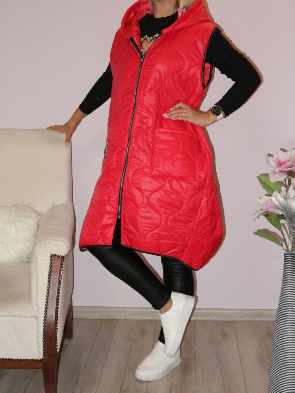Steppelt ,kapucnis,zsebes ,ívelt aljú,cipzáras mellény! piros XL-3XL